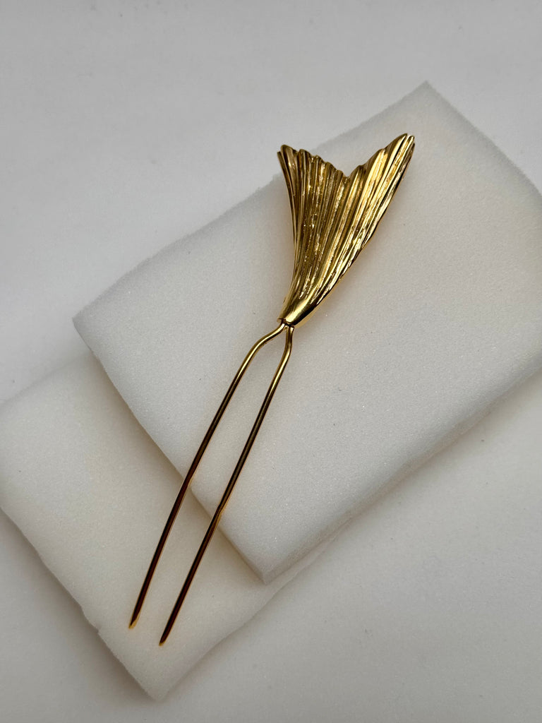 Gancho para cabelo em ouro branco ou amarelo com desenho de rabo de sereia como detalhe na ponta