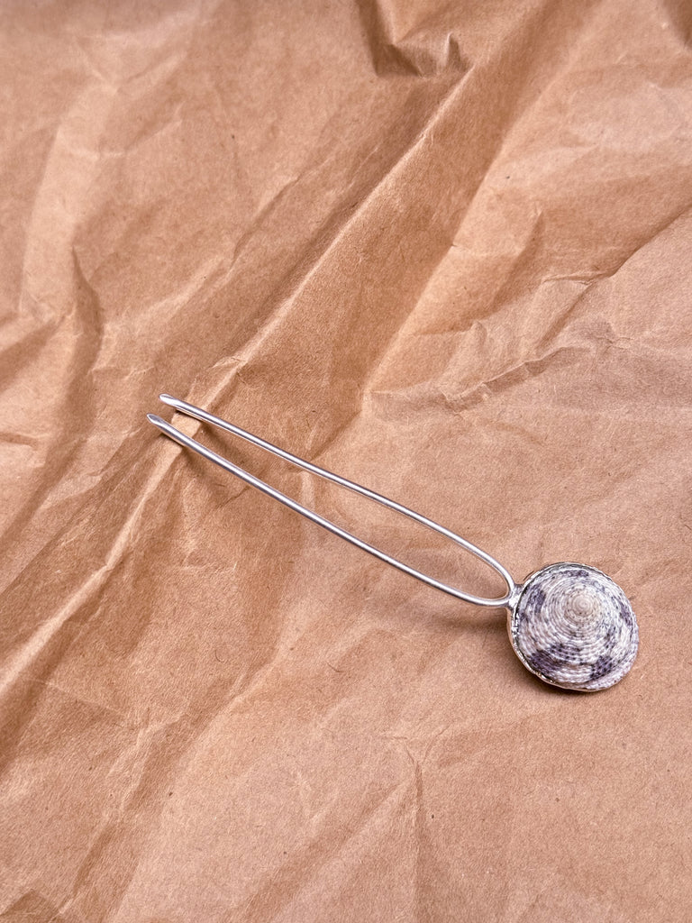 Presilha estilo garfo com concha natural com banho em ouro amarelo e ouro branco